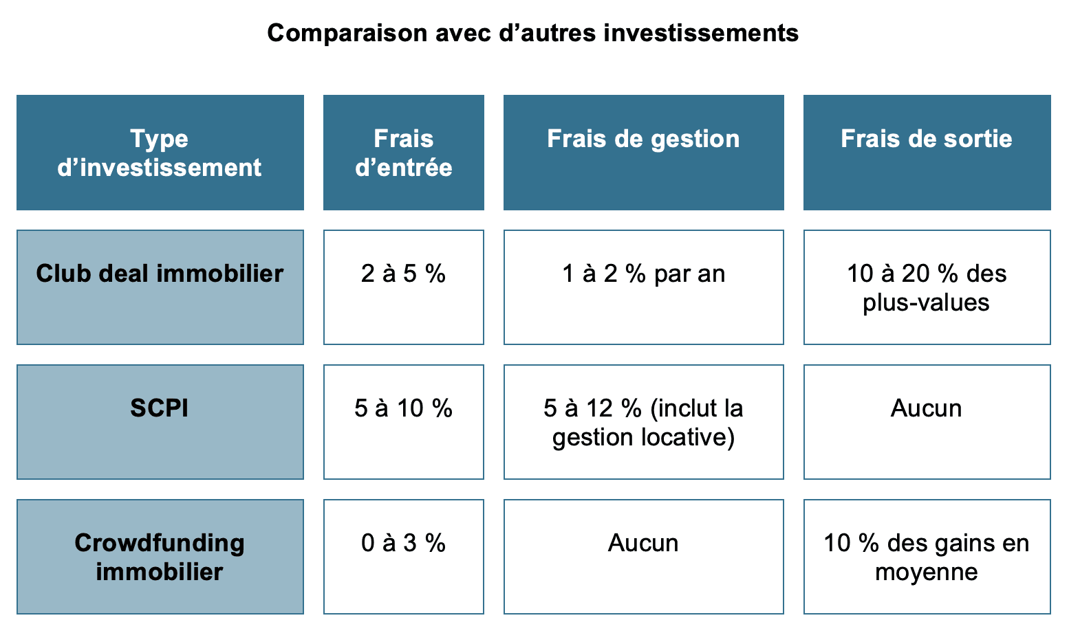 Investir dans un club deal immobilier implique des frais spécifiques, qui varient selon la plateforme et la structure du projet. Les principaux frais: