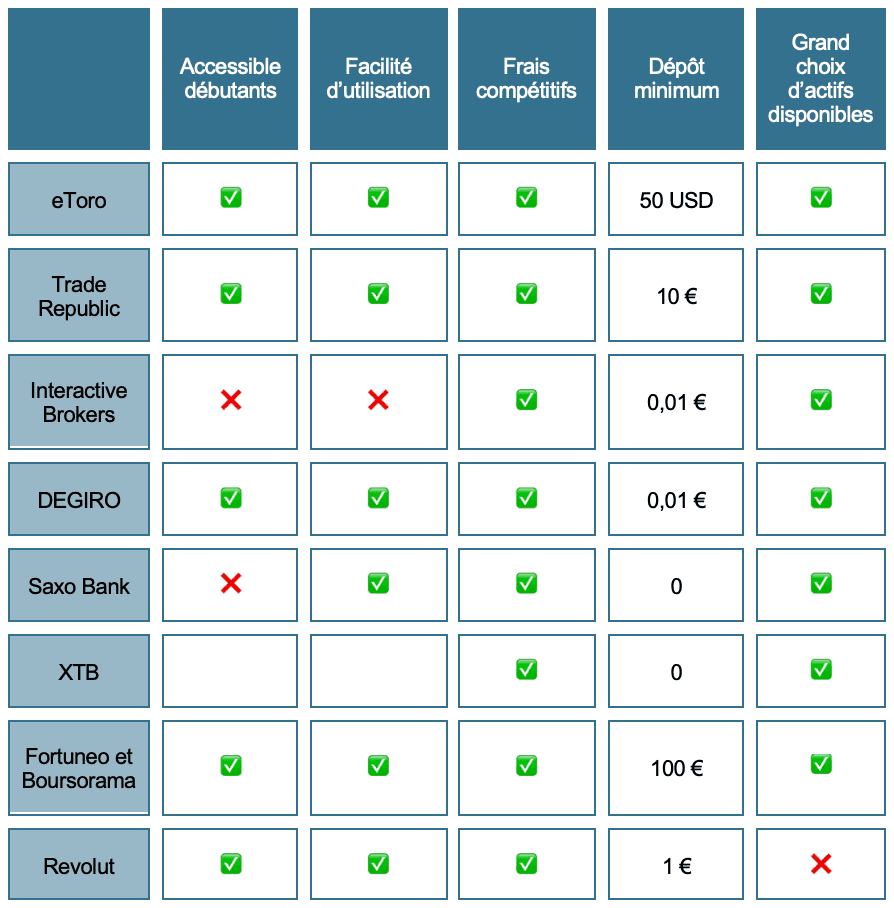 Tout dépend de vos objectifs . Il existe des courtiers généralistes, des courtiers qui proposent un PEA ou des courtiers spécialisés dans le trading de produits dérivés ou les cryptomonnaies. Parmi les courtiers généralistes, Trade Republic et eToro apparaissent comme tout à fait fiables.