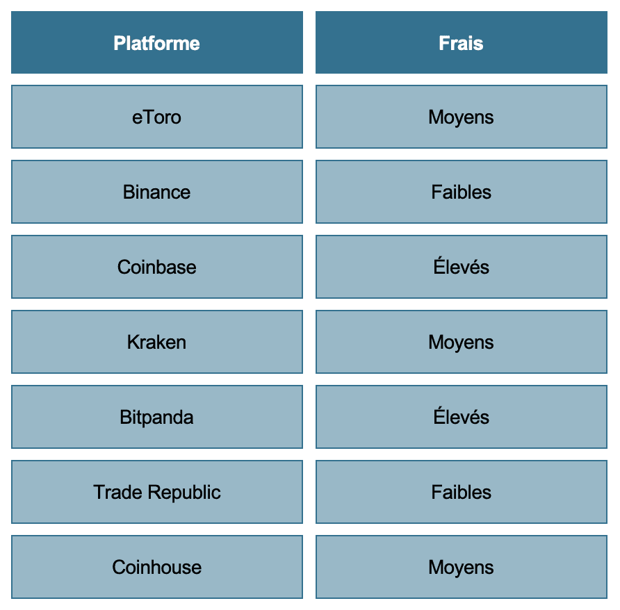 Quelle plateforme crypto prend le moins de frais ?